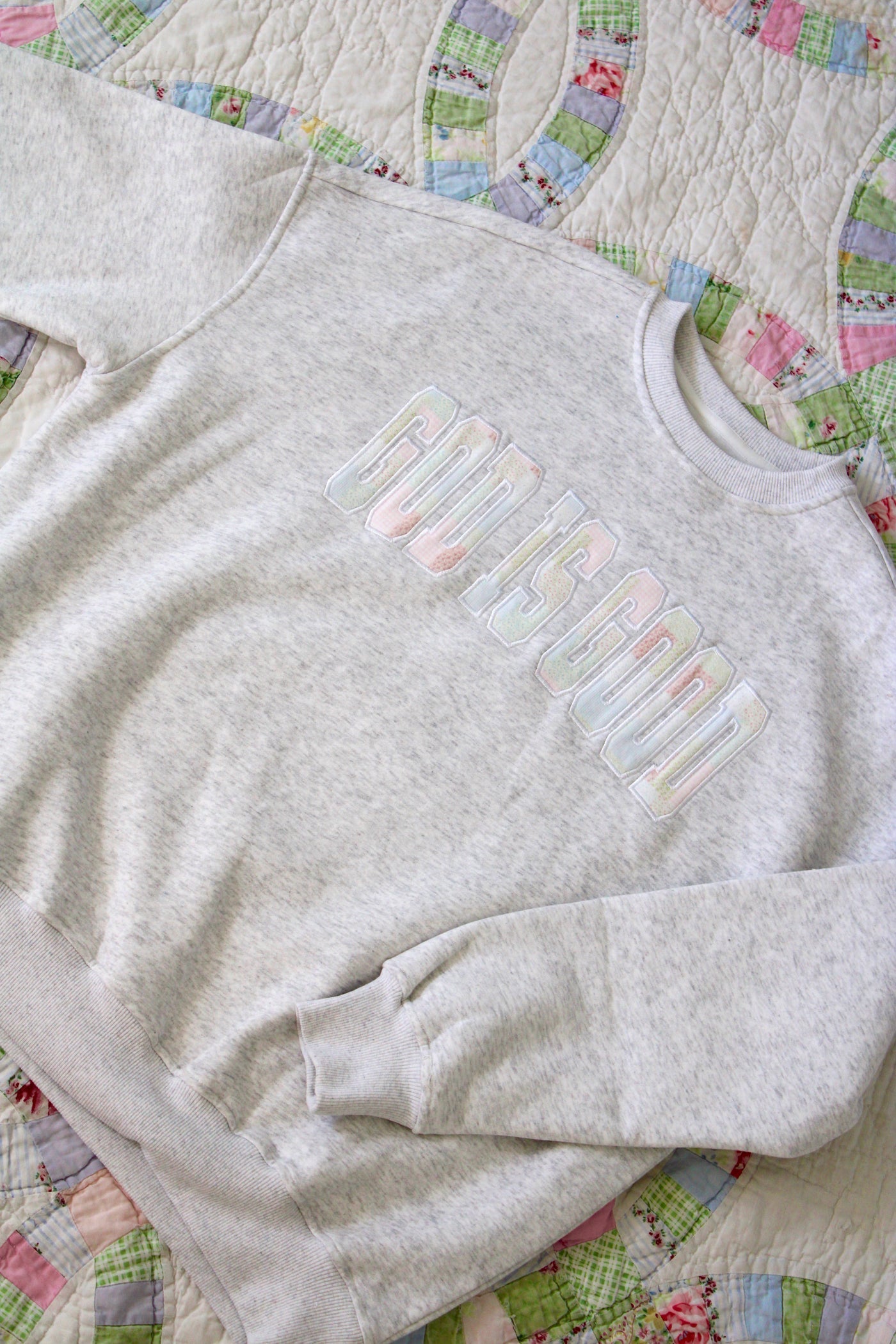 Faith meets comfort in the sweetest way with our God Is Good Quilted Crewneck. This cozy sweatshirt features soft heather gray fabric with beautifully quilted pastel lettering that adds the perfect touch of texture and charm. With its relaxed fit and timeless message, it’s the perfect everyday piece to style with jeans, leggings, or cozy shorts.